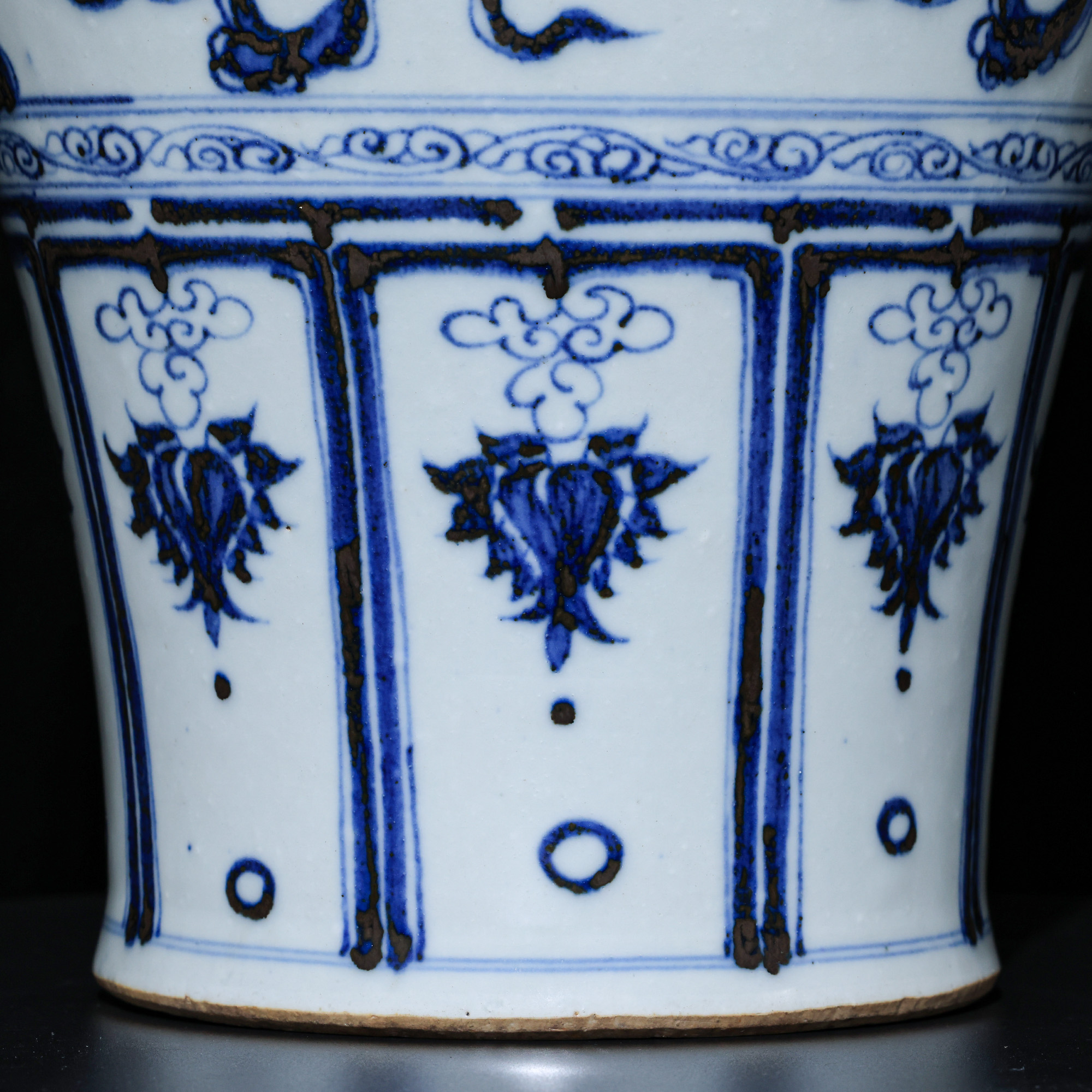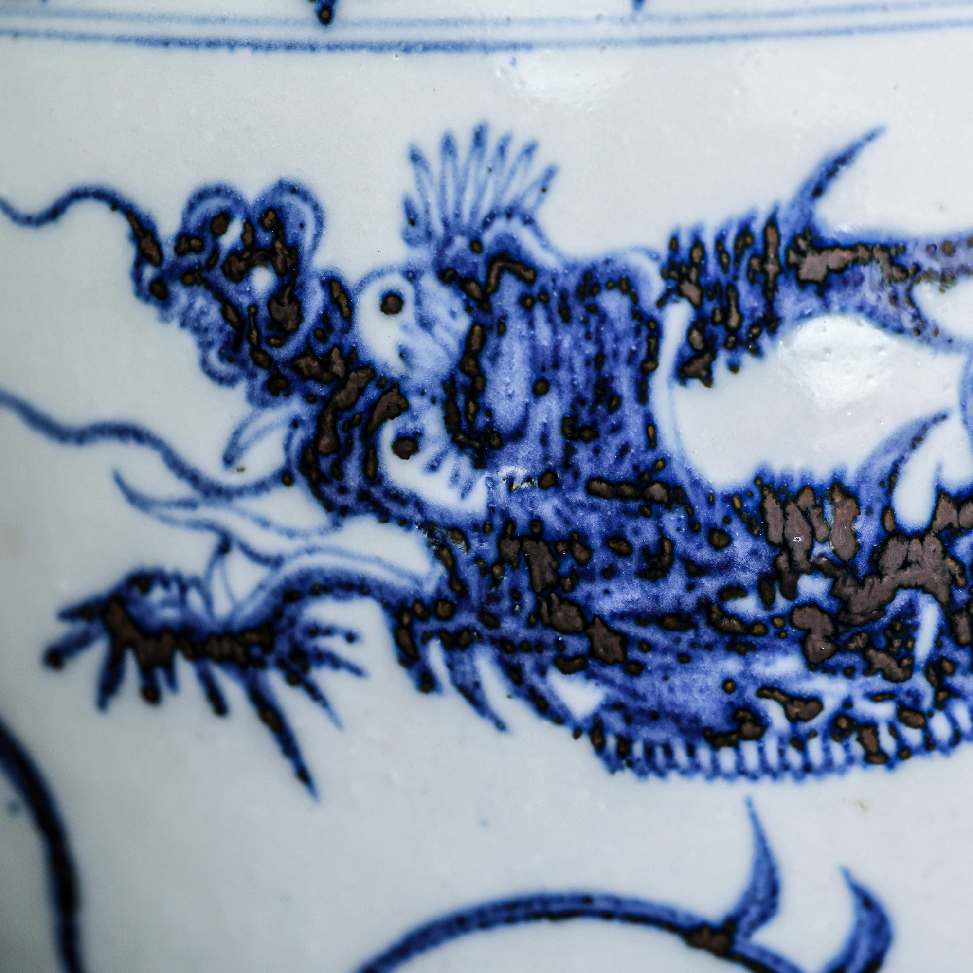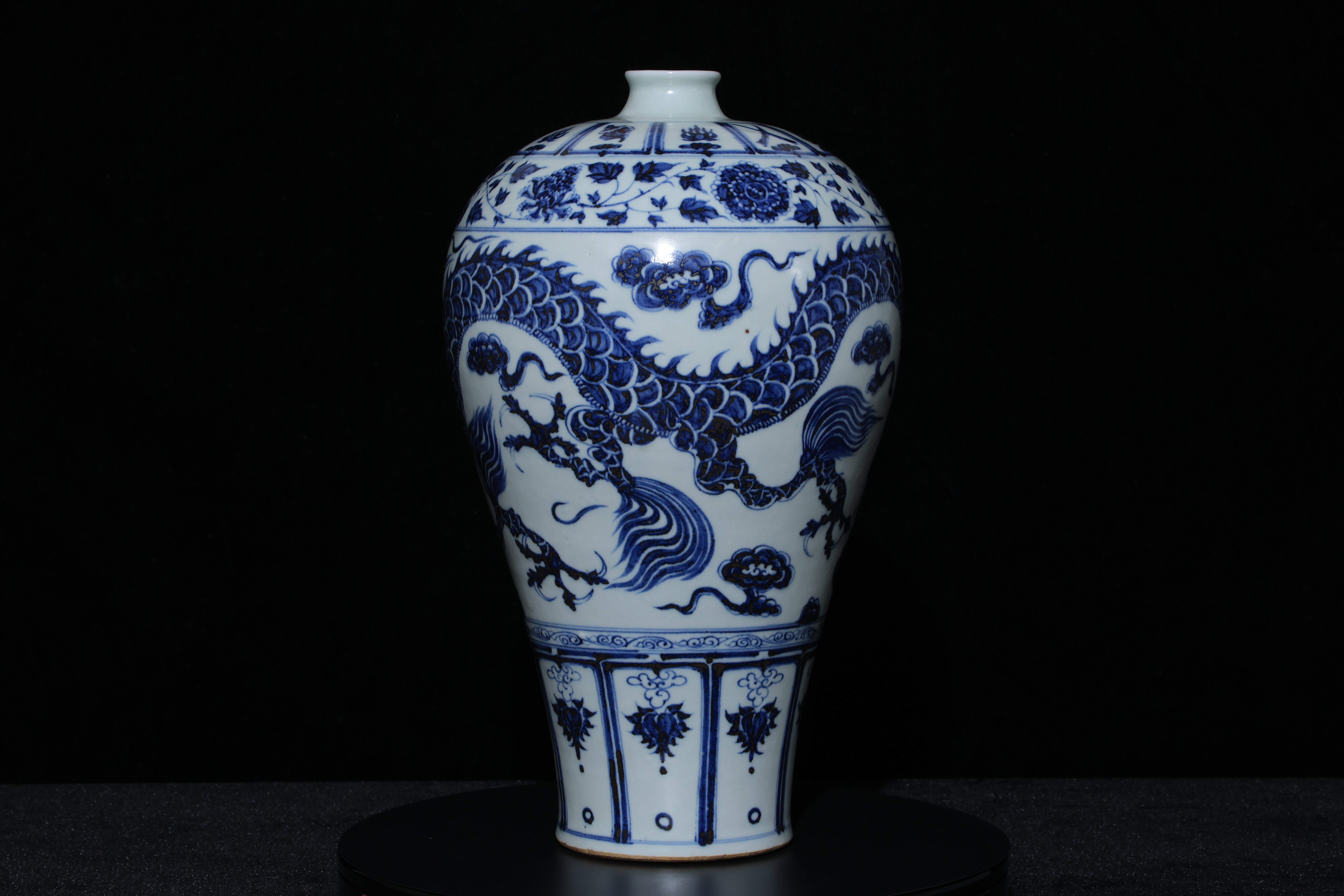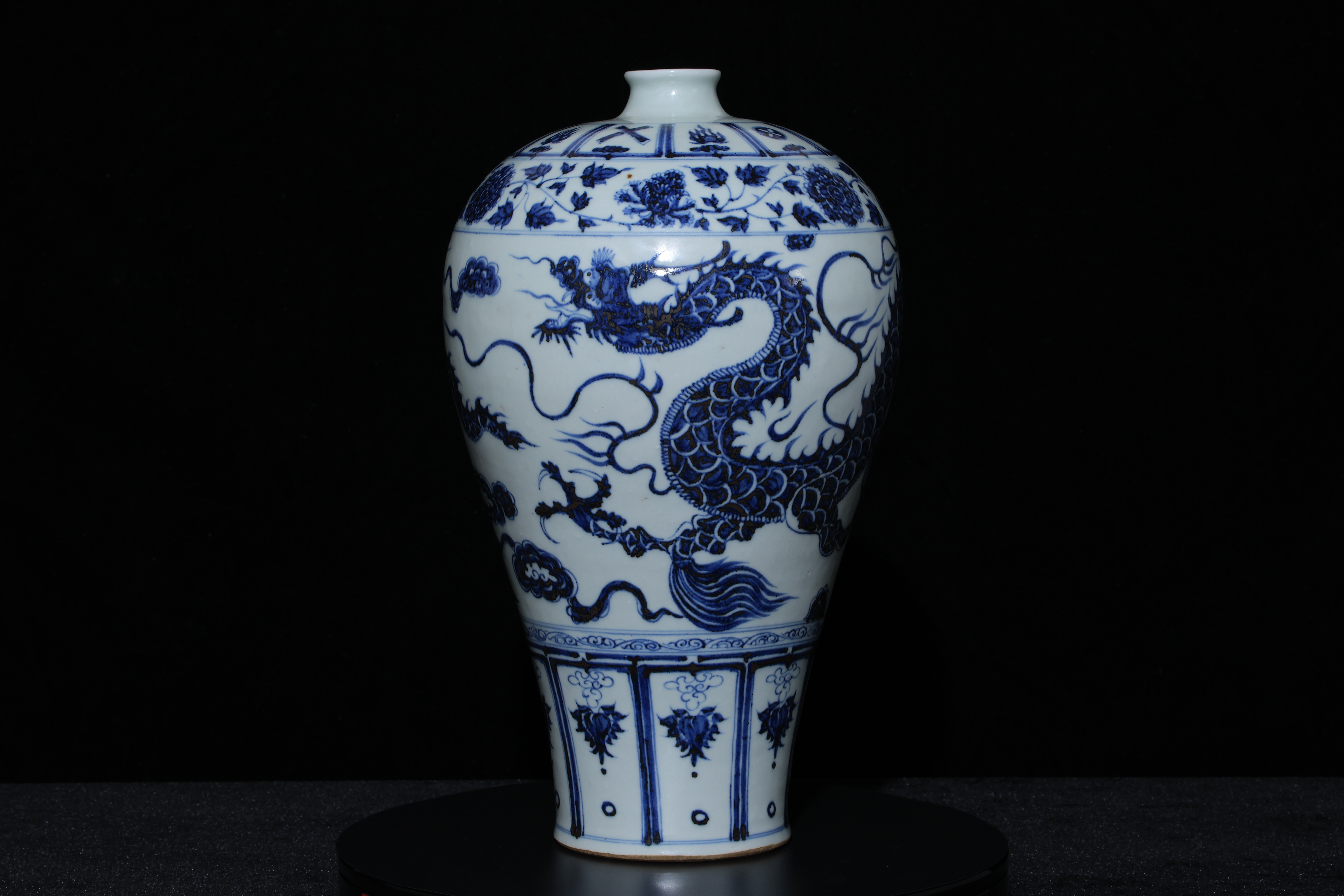 Name: Yuan Dynasty Blue and White Mei Ping with Dragon Motif