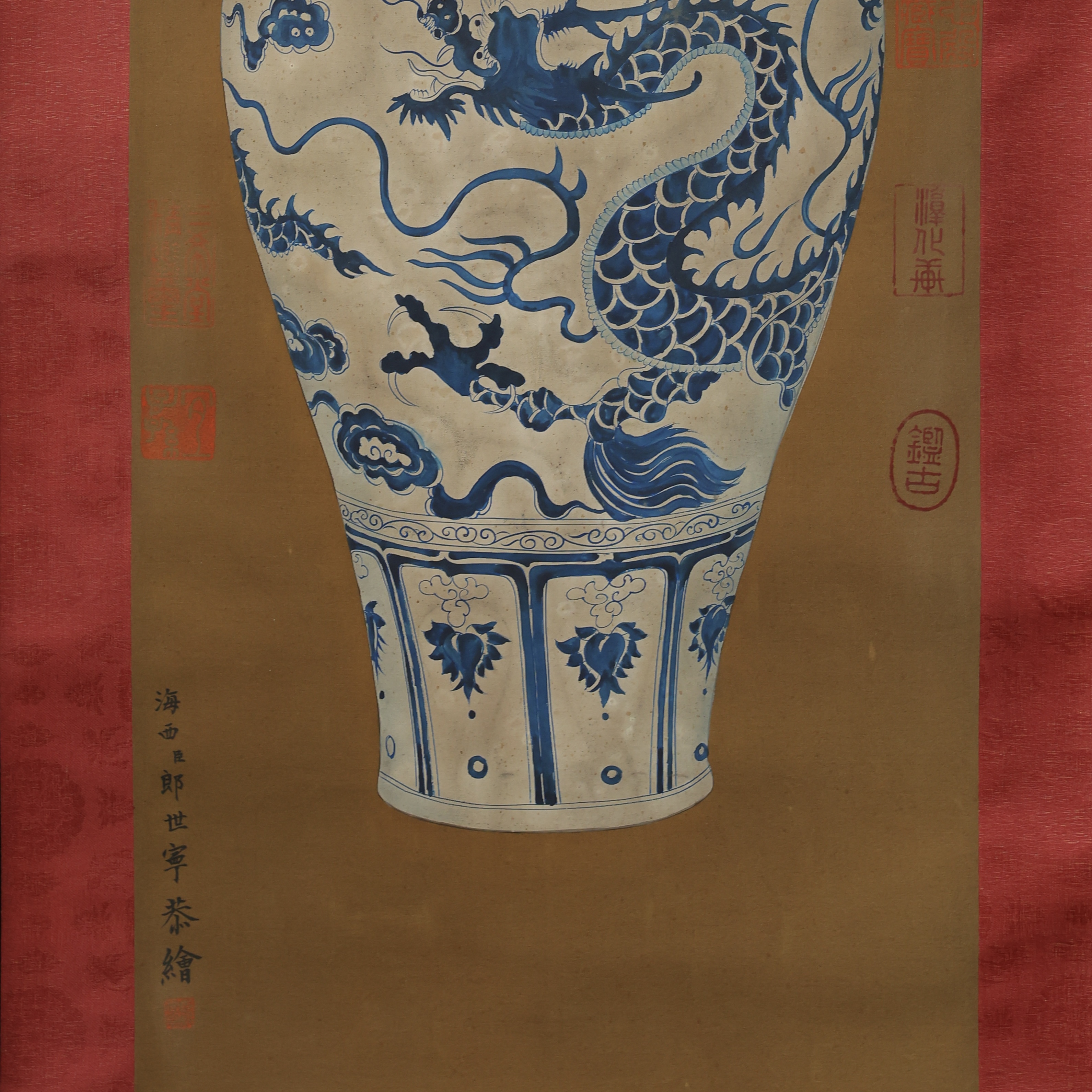 Title: Porcelain Treasure Scroll — Painted by Lang Shining (Giuseppe Castiglione), Qing Dynasty